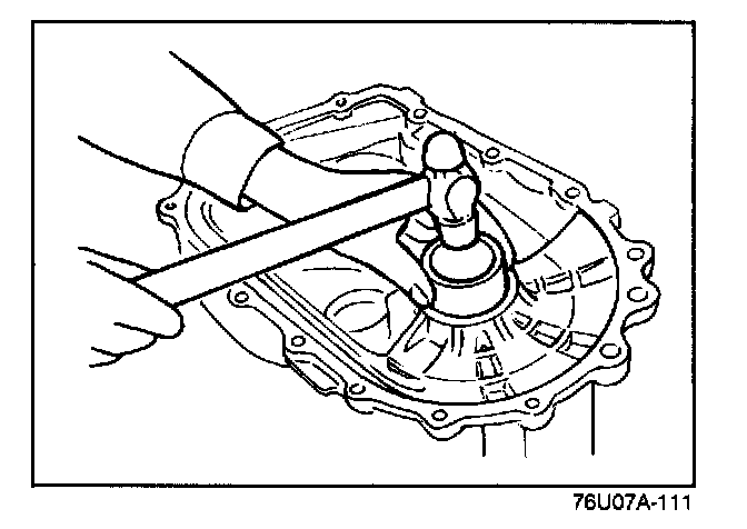 4. Tap the bearing outer races with a hammer handle until they are flush with the end of the transaxle case.