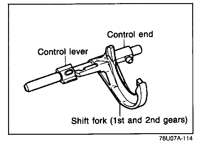 3. Position the shift fork and shift rod assembly as shown and install the shift fork into each hub sleeve.