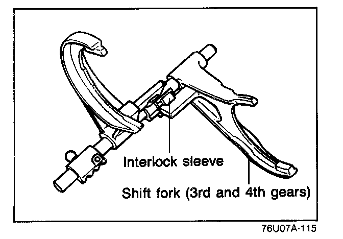3. After mounting the shift fork (1st and 2nd gears), the interlock sleeve, and the shift forks (3rd and 4th gears), assemble the parts.