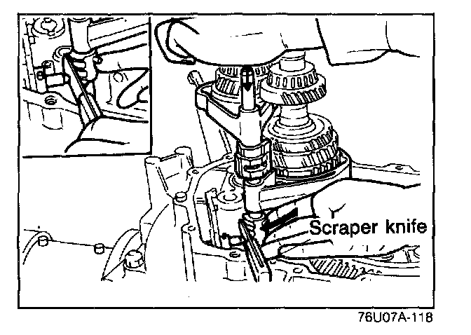 13. Use a thickness gauge to measure the gap in the selector at each shaft gear.