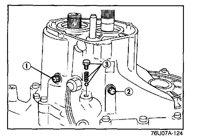 1. Install the lock bolt (1) and the guide bolt (2), and install the ball spring and the lock bolt (3).