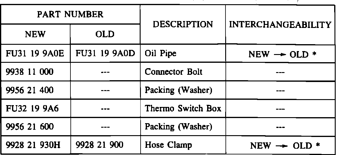 To provide more clamping force, the length of the bolts at the hose clamps on the cooler line has been increased. If you encounter a complaint of oil leakage at the oil hose, install a new hose with modified clamps.