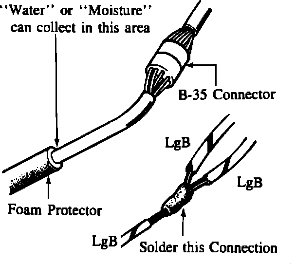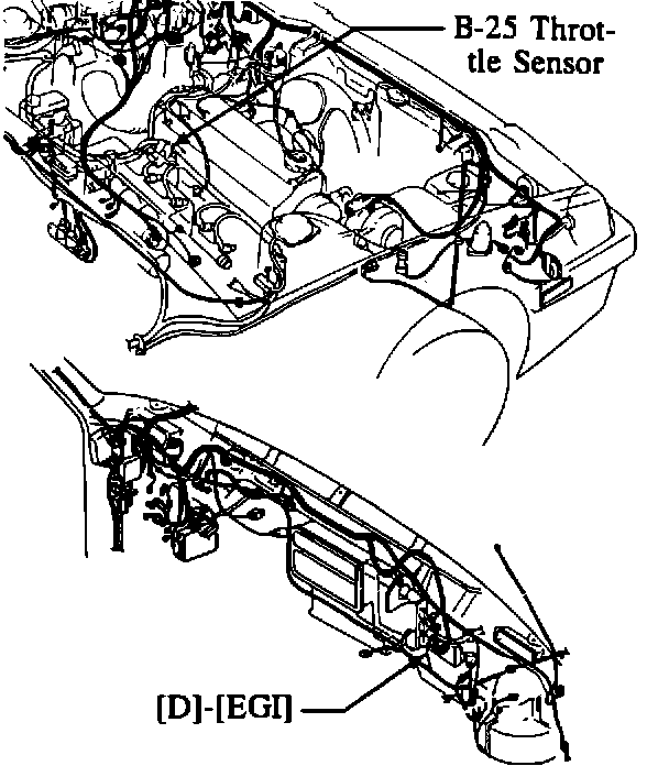 Inspect the EGI harness for water or a poor connection under the foam protector area near the B-35 connector. Check the point where the throttle sensor wires LgB, LgW and GO segments are joined by a crimp connection. If it is rusted or moisture is found, solder these connectors and protect them with insulated tape. Make sure the harness is not touching the steering pipe. If the problem can not be solved after performing the above mentioned inspection, go to step G.