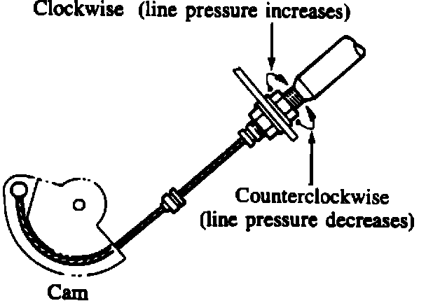 When the locknuts are moved, line pressure is increased or decreased as shown. Adjust the cable locknuts to correct position using the following procedure.