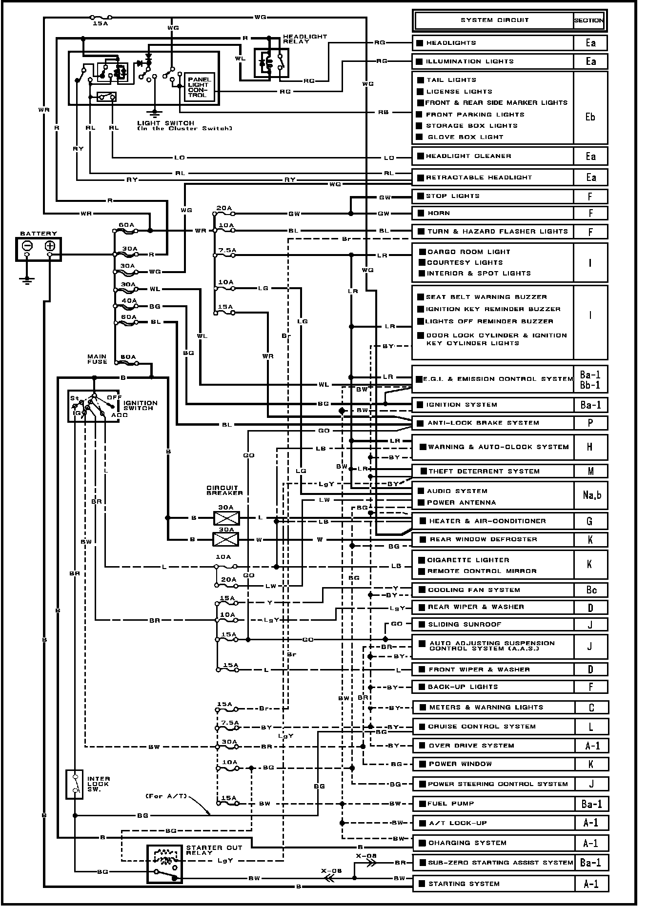 Fig. 76 Power Distribution Wiring Circuit. Less Turbo: