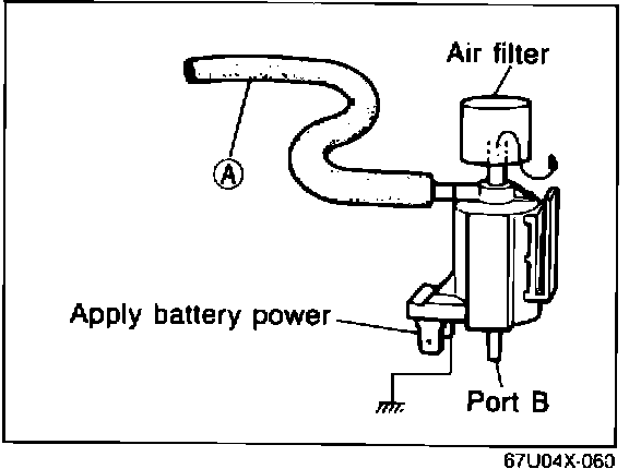 4. Blow through the solenoid valve from port (A). Check that air passes through the solenoid valve and flows from the air filter.