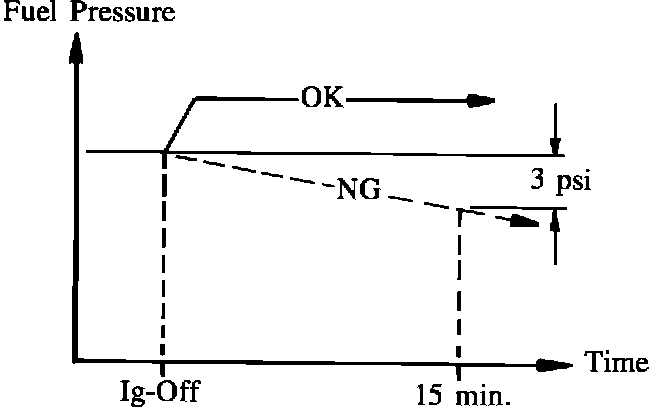 If the pressure goes down more than 6.4 psi (0.45 kg/sq.cm), replace the fuel pump. If the fuel pump is OK, proceed to the next step.
