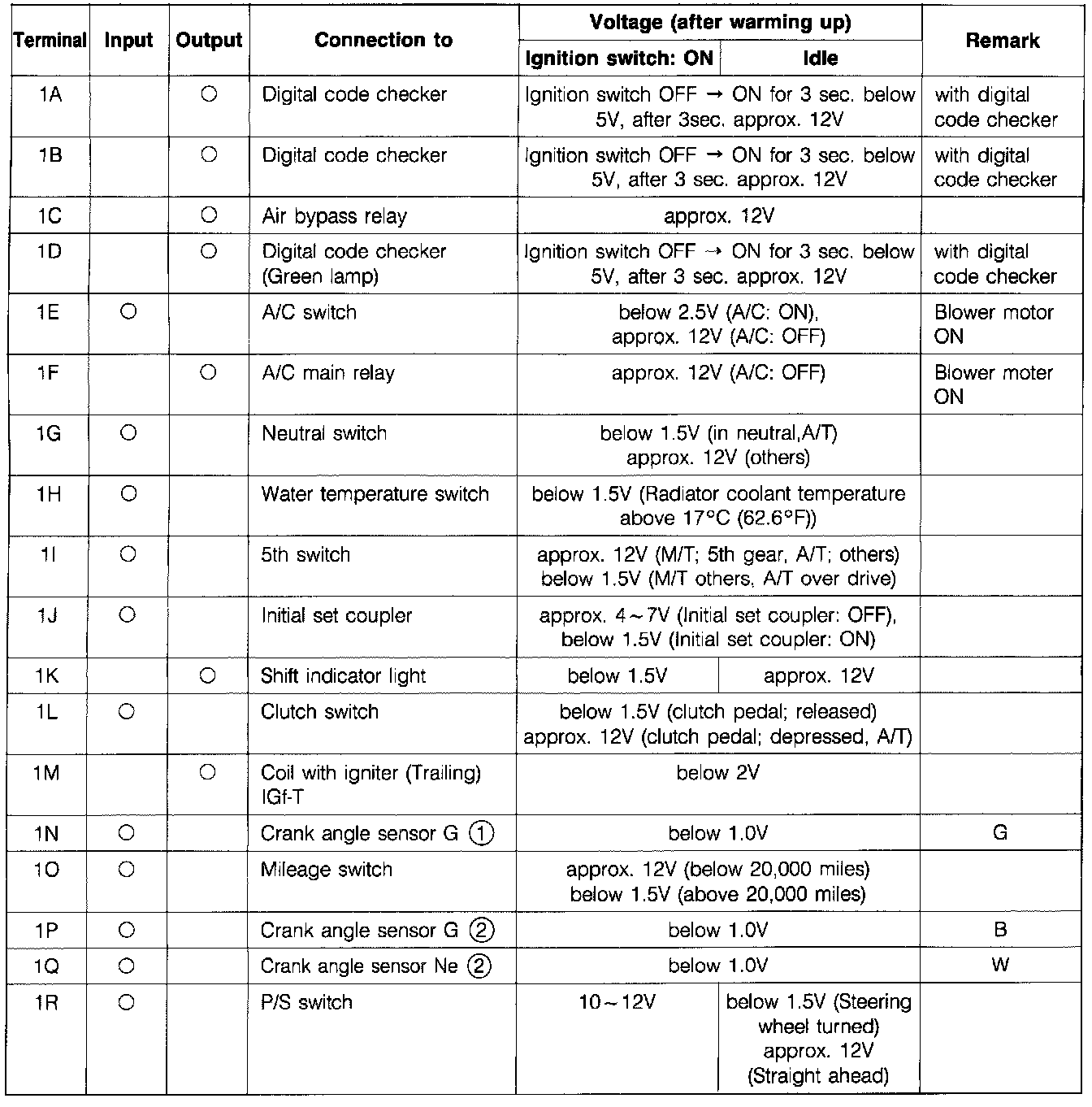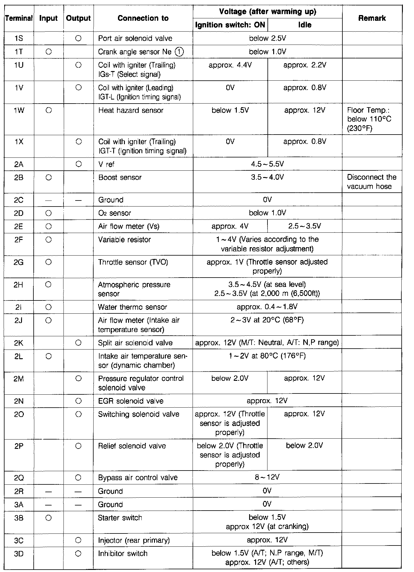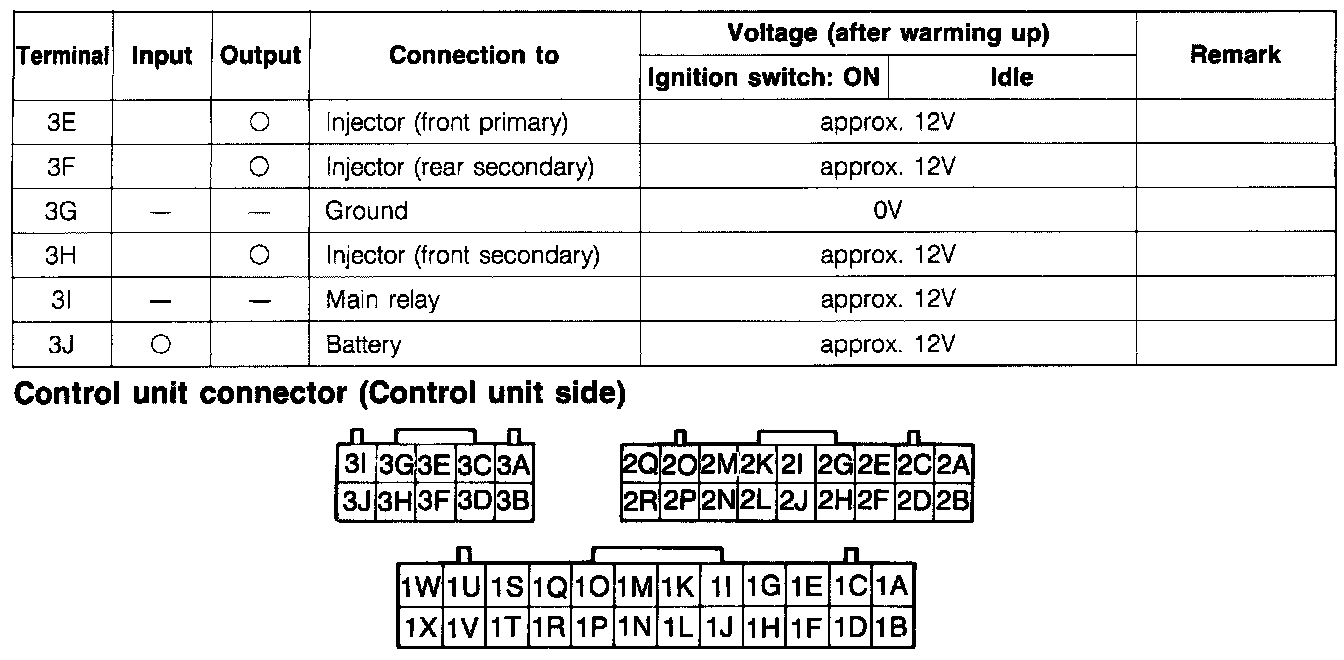 Control Unit Voltage Specification Chart: