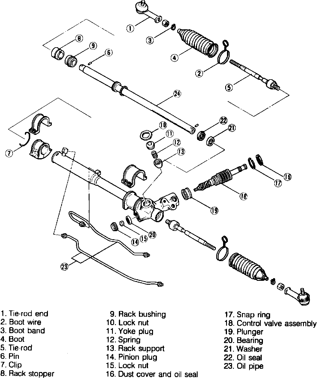 15. Remove oil pipes from rack housing.