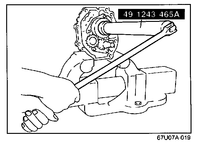 1. Connect the mainshaft holder (49 0259 440) to the mainshaft, and mount securely in a vise.