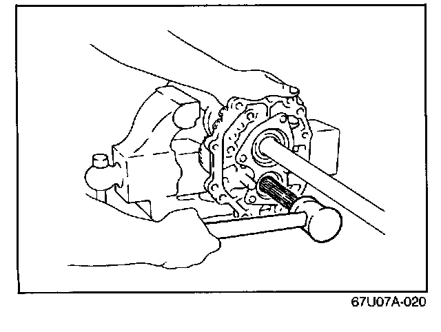Remove the bearing housing by lightly tapping the countershaft and mainshaft with a copper hammer.