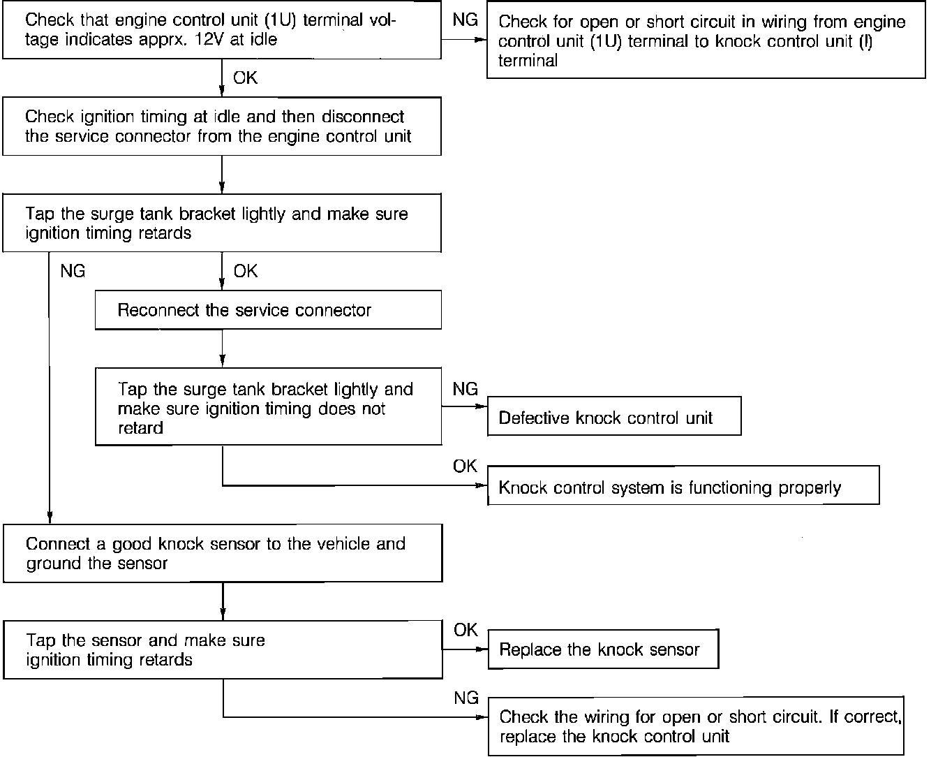 Fig. 28 Knock control system troubleshooting chart: