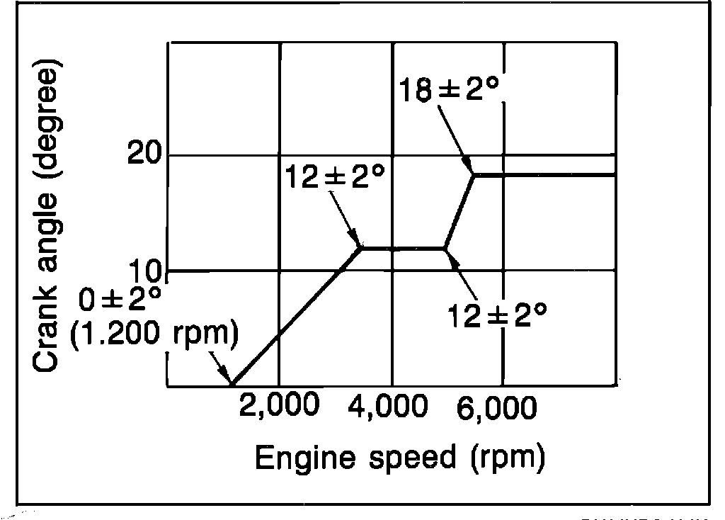 4. While gradually increasing engine rpm, check changes in ignition timing with a timing light Fig. 19.