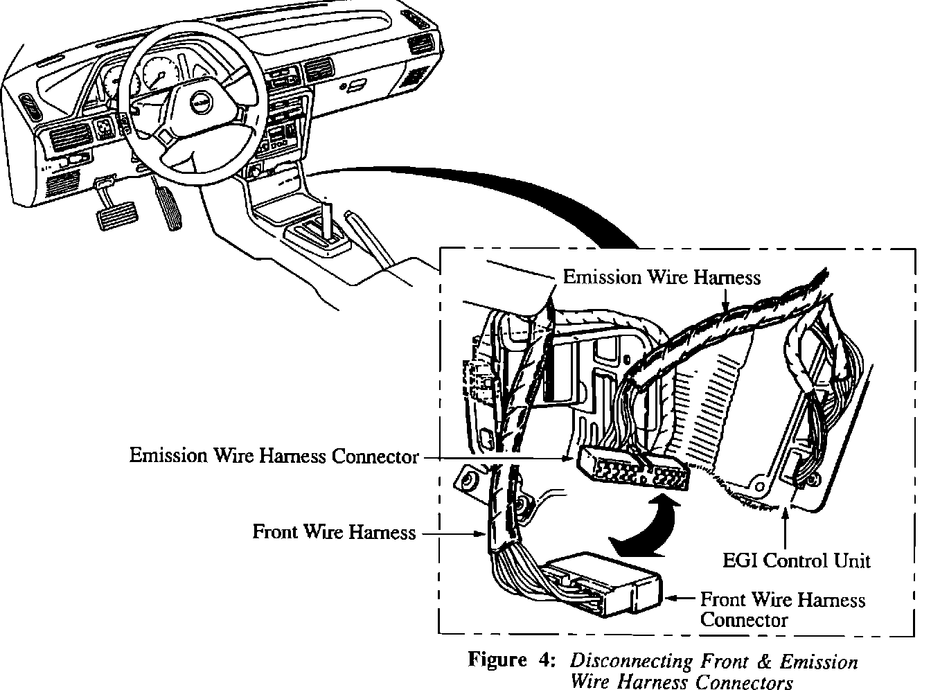 2) Disconnect the front wire harness and the emission wire harness connectors. Figure 4.