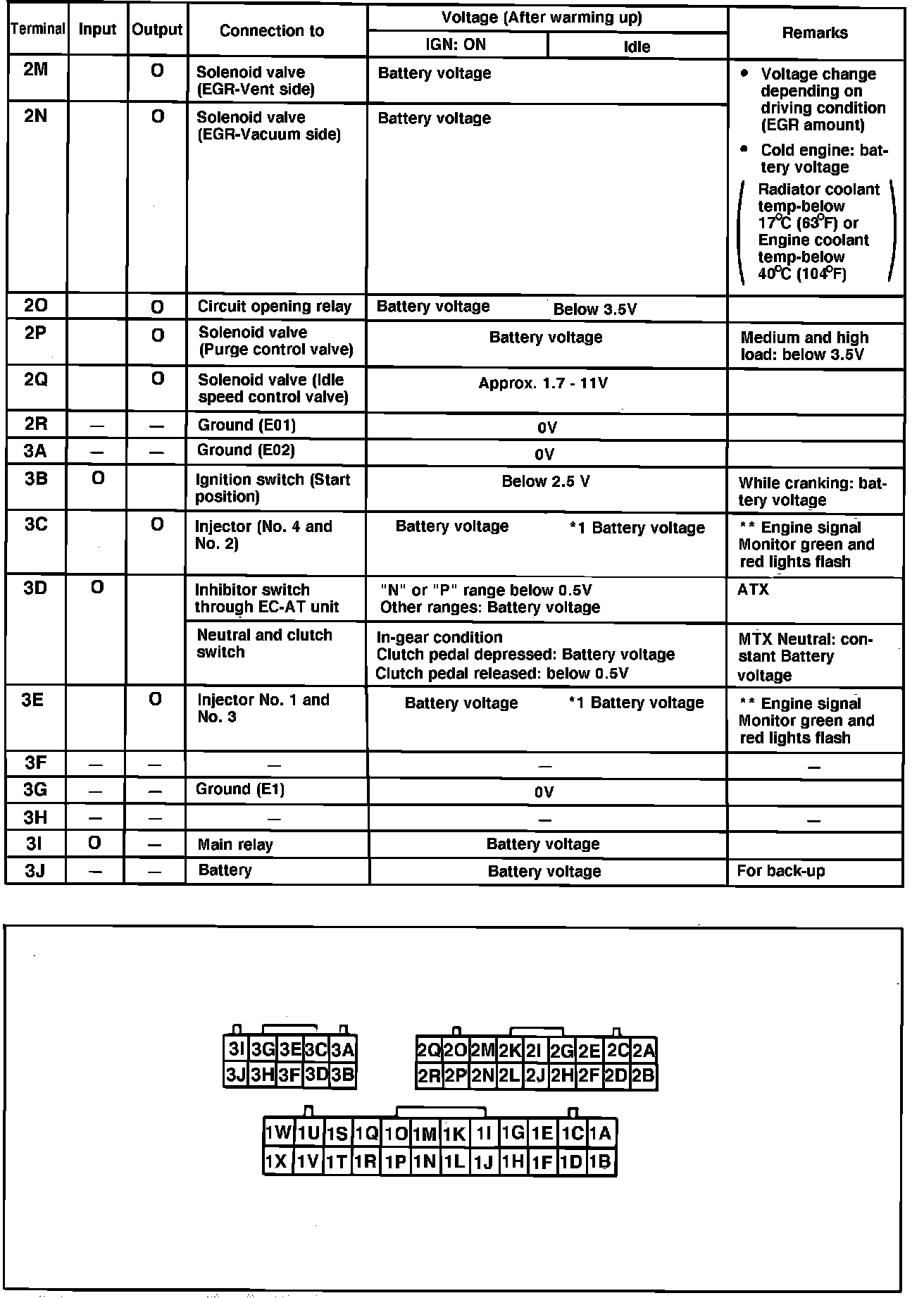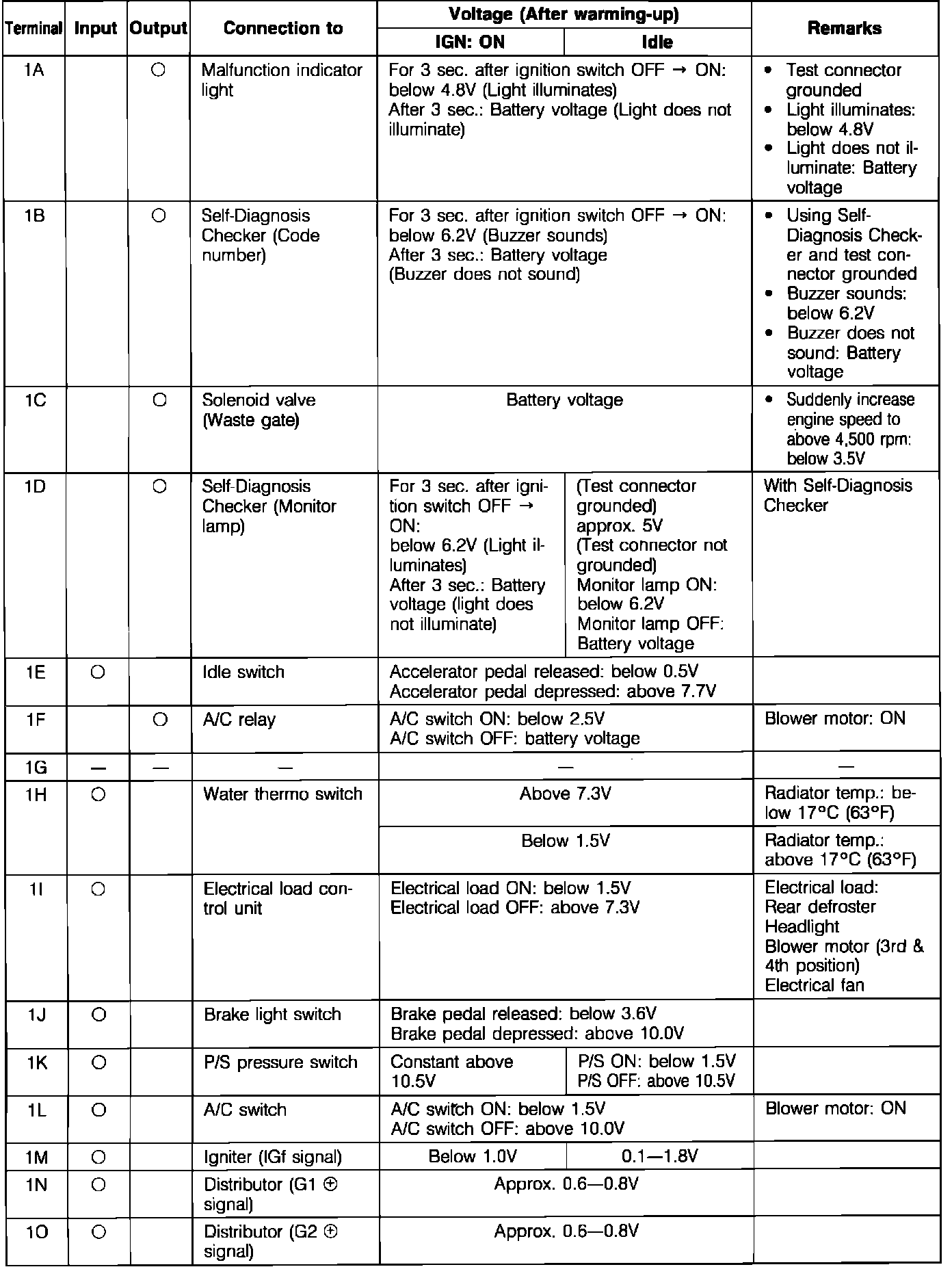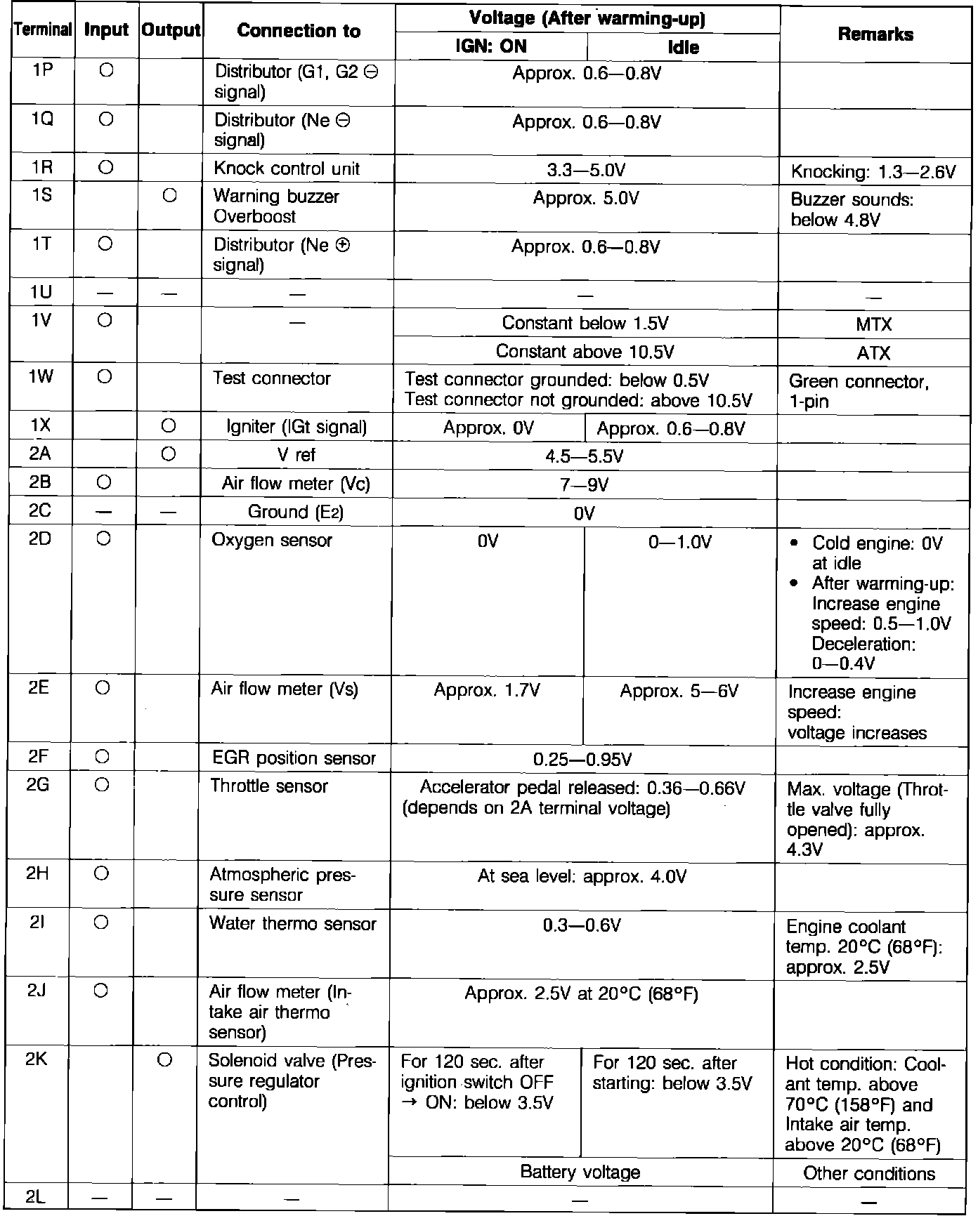 Fig. 68c Control unit voltage specifications chart. Turbo: