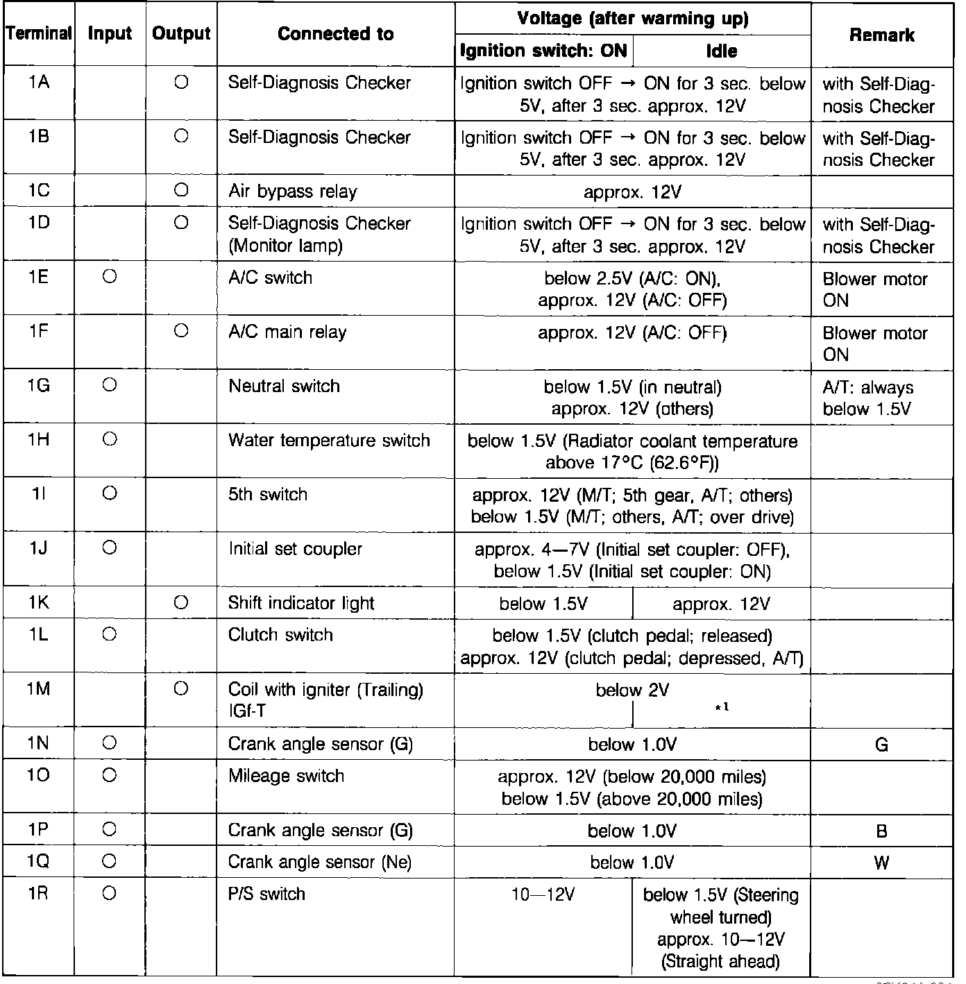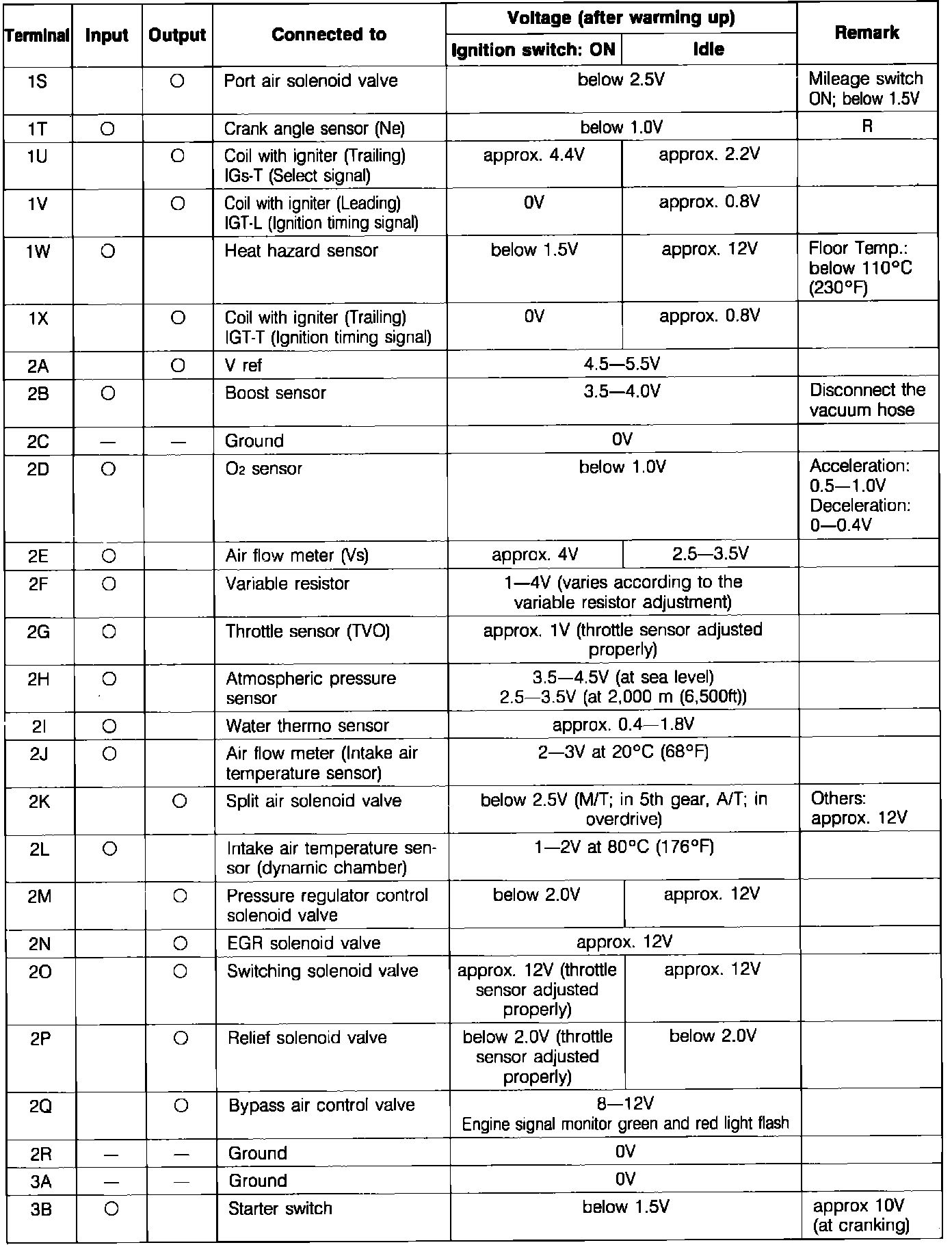 Fig. 70b Control unit voltage specifications chart. Exc. turbo: