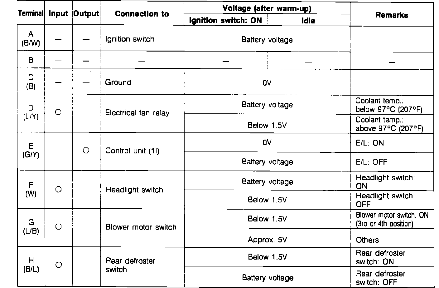 Engine Load Control Unit Terminal Voltages: