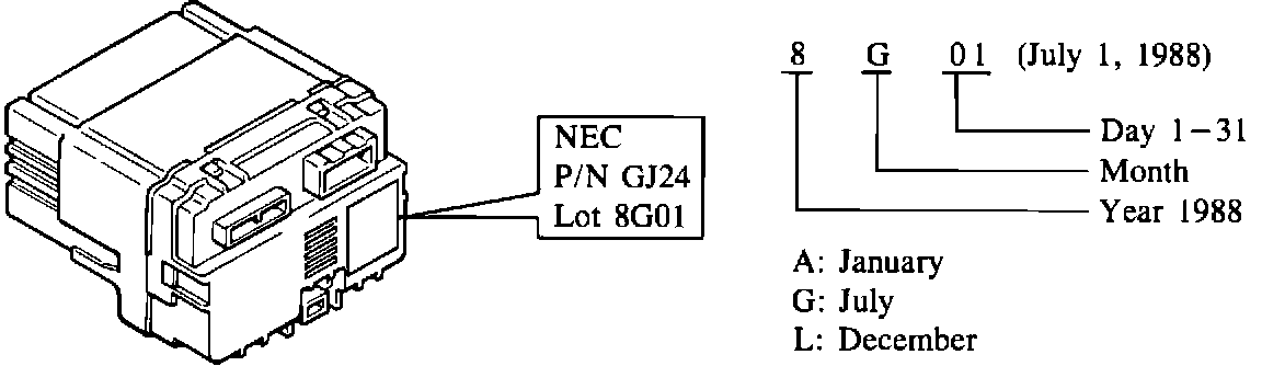 Although the part number of the C.P.U. has not been changed, the modified C.P.U. can be distinguished by a lot number on the C.P.U. as shown below.