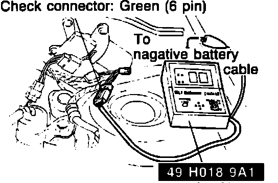 7. Connect the self diagnostic tester to the check connector, the oxygen sensor connector, and the negative battery terminal.