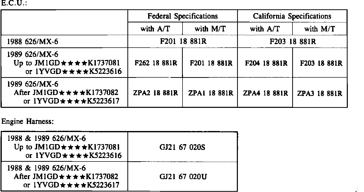90mazda03 Applicable Model/s 1988-89 626/MX-6