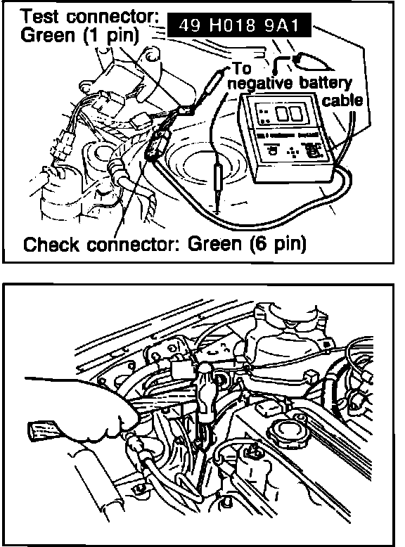 1. Connect Mazda Signal Monitor (SST #49 H018 9A1) or equivalent aftermarket "Scan" tool to check connector.