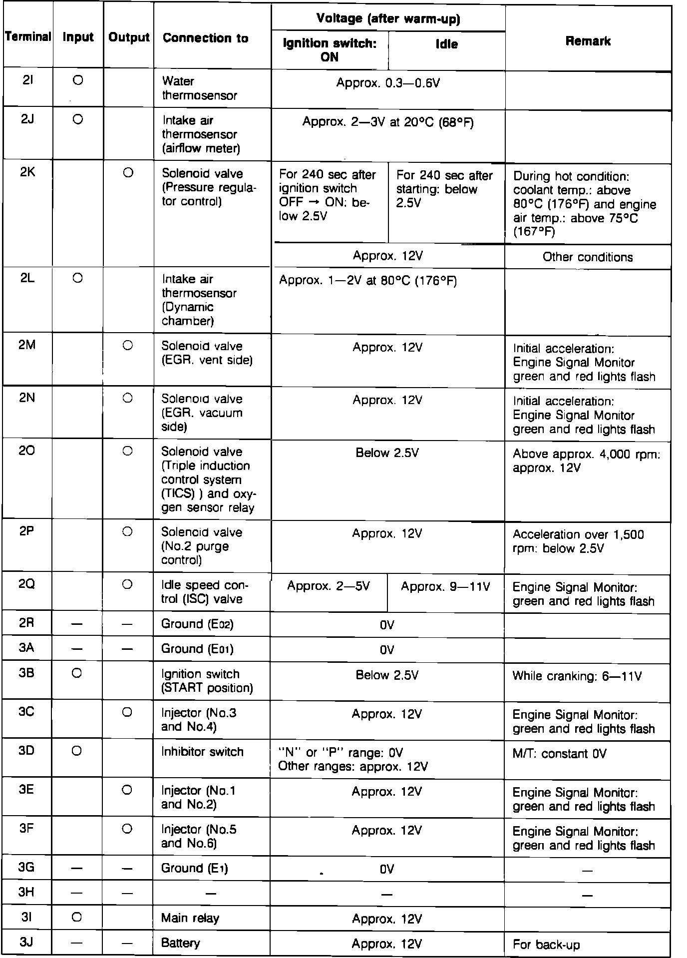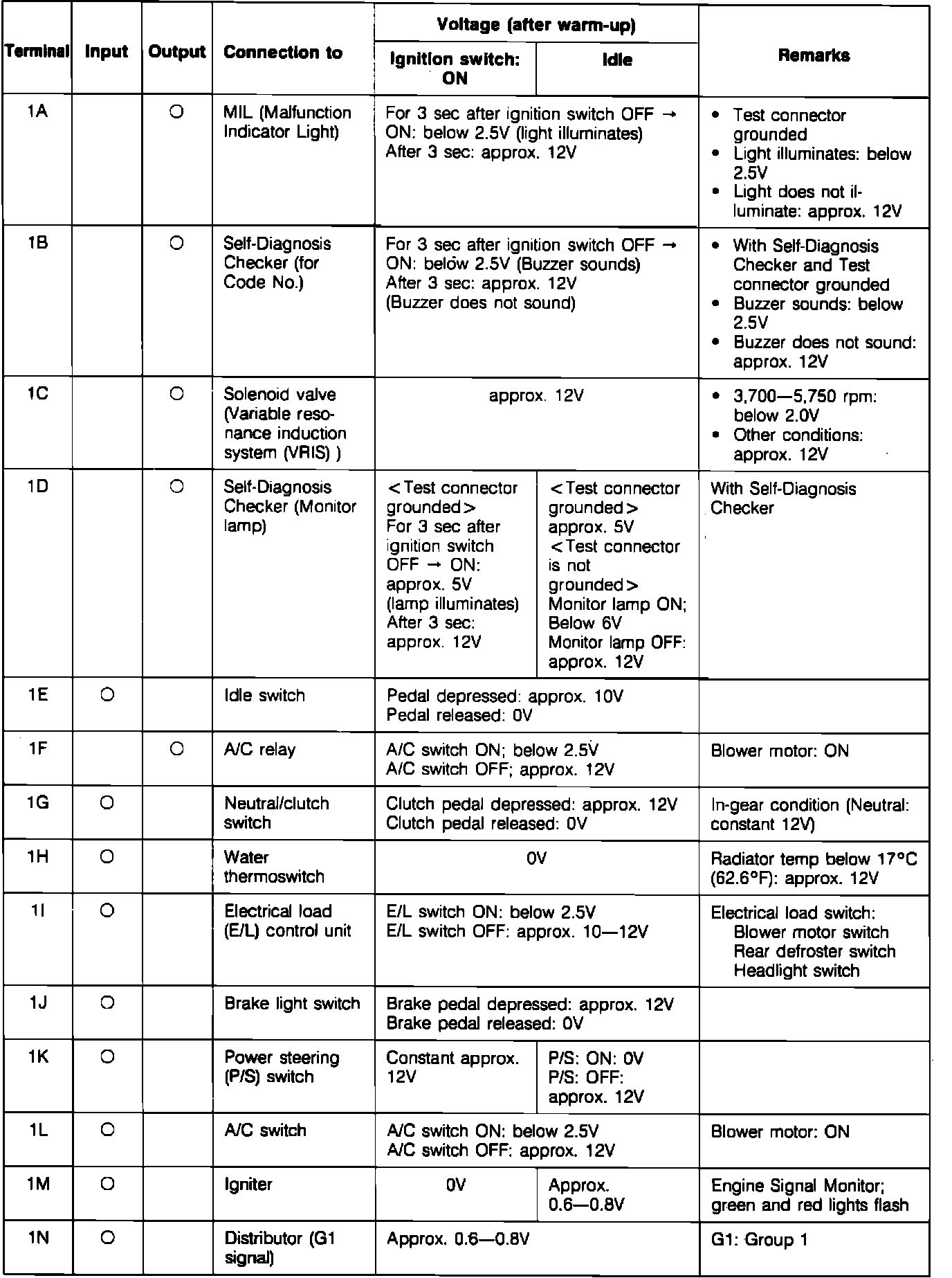 1. Connect the engine signal monitor between the control unit and the engine harness using the adapter (SST Mazda Part# 49 9200 163).
