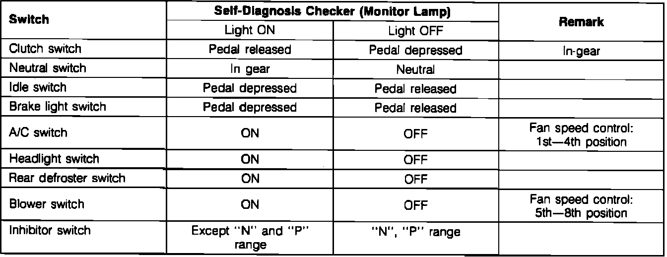 4. Turn the ignition switch on, then check that the monitor lamp illuminates when each switch is made to function according to the procedure below.
