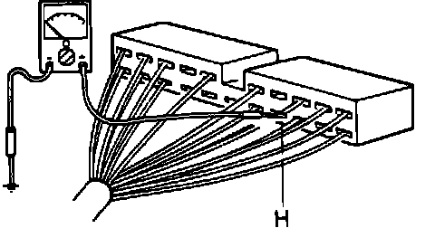 2. Disconnect Auto Adjusting Suspension (AAS) control unit connector and connect ohmmeter between terminal H and body ground.
