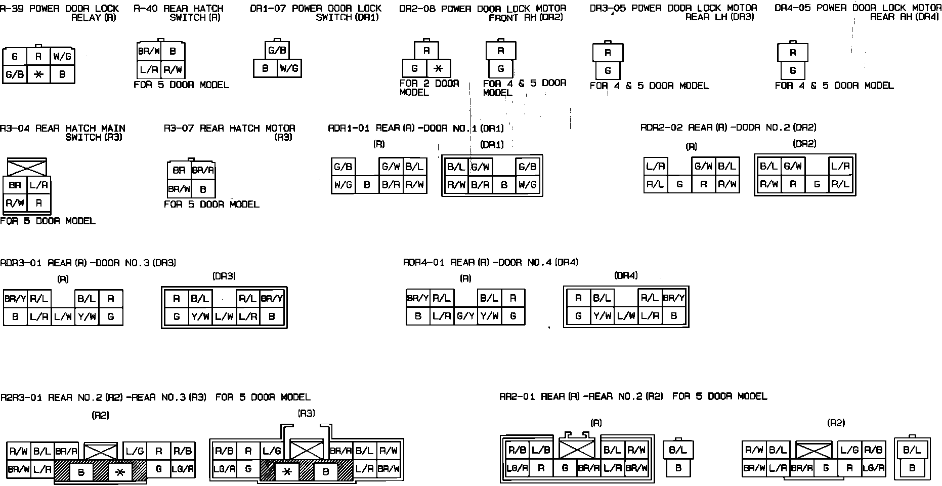Power Door Lock & Rear Hatch Lock . 5 Door. Connector Identification: