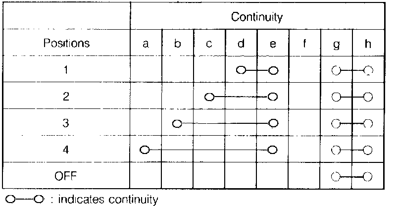 Check for continuity between terminals in following positions with an ohmmeter.
