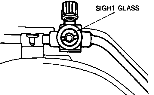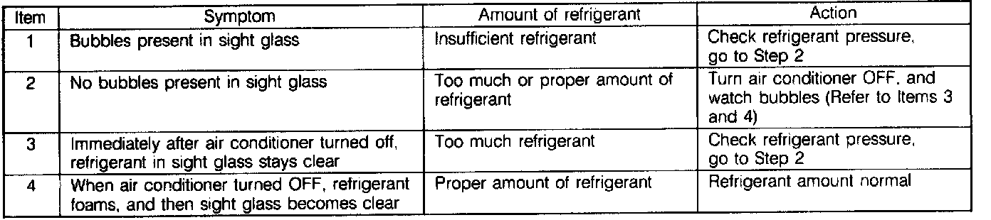 3. Observe the sight glass to determine the amount of refrigerant and the related action as shown below.