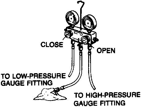1. Connect the A/C manifold gauge set.