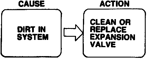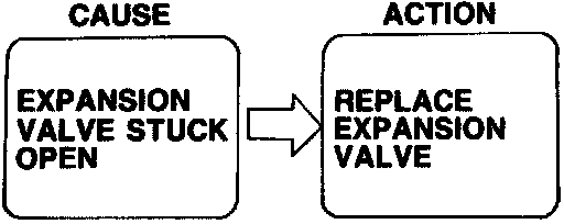 4. If the pressures are not as specified, refer to the following chart and check the system as indicated.