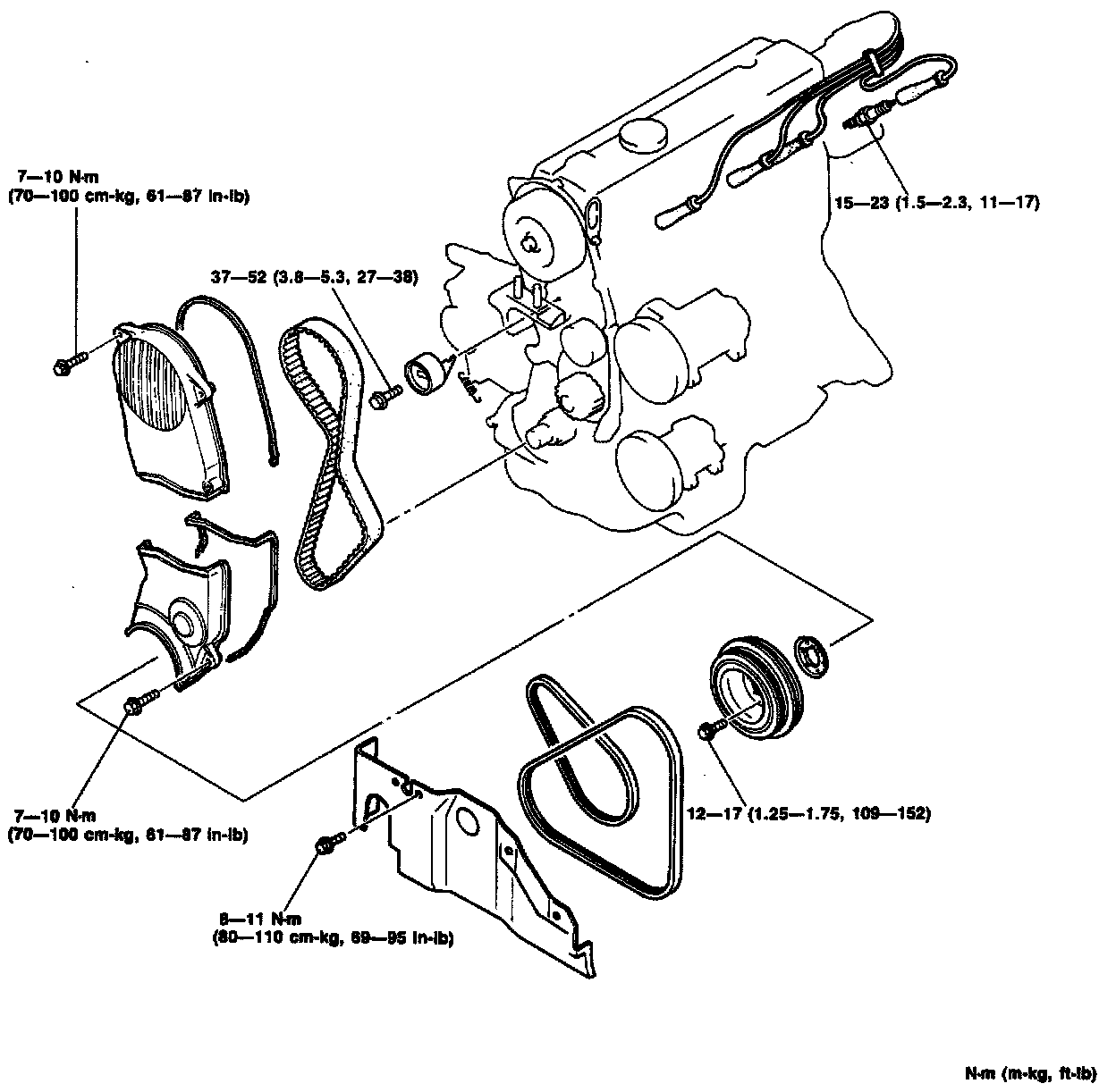 Tightening torque: 15-23 Nm (1.5-2.3 m-kg, 11-17 ft-lb)