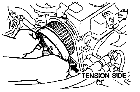 - If the timing belt is being reused, it must be reinstalled to rotate in the original direction.