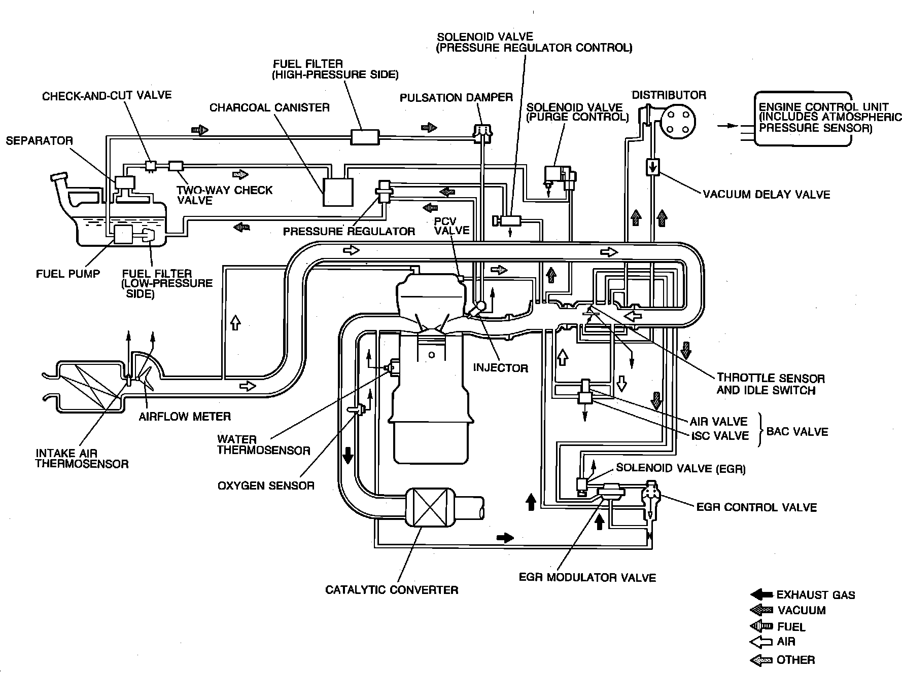 The Engine Control Unit (ECU) is the central component of this computerized fuel, ignition and emission control system. Mazda refers to the system as Electronic Gasoline Injection (EGI). To maintain fuel economy, good driveability and reduced vehicle emissions, the ECU monitors data from various sensors and controls functions such as the fuel injection system (air/fuel ratio), emission control devices and on-board diagnostics.