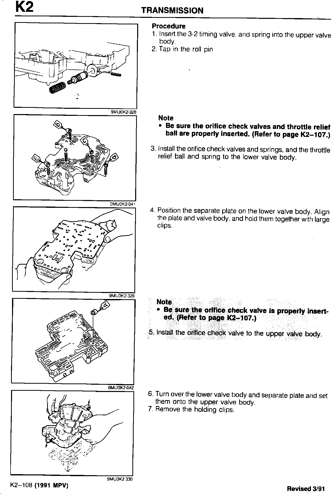 1991 Mpv Section K2 A/T Control Valve Body Assembly