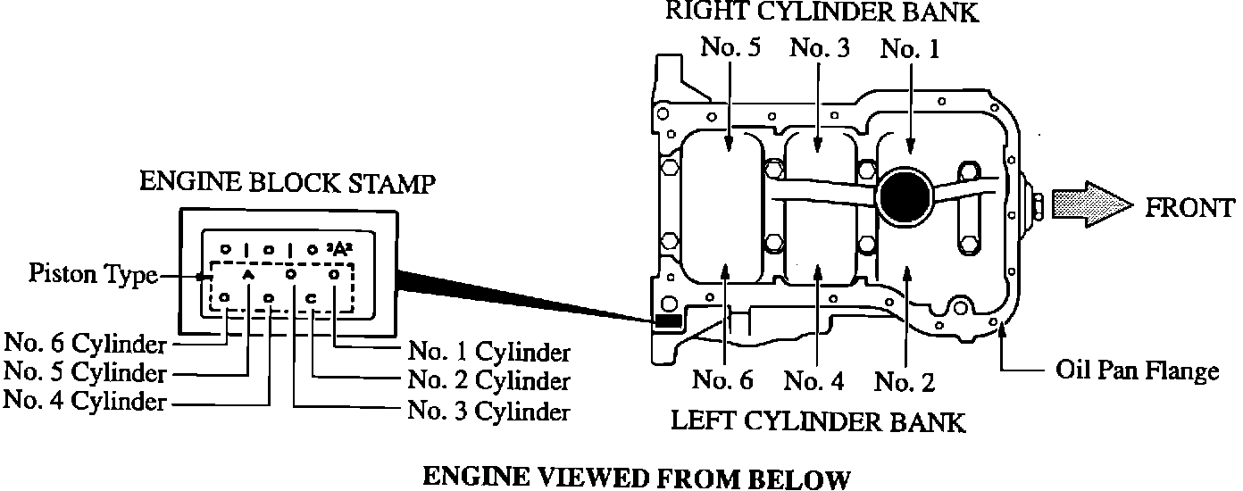 ^ Different type pistons may be required for each cylinder. Types available are "Type A," "Type C," and "Type O." To identify the type required, refer to the stamping on the bottom, left, rear portion of the block.