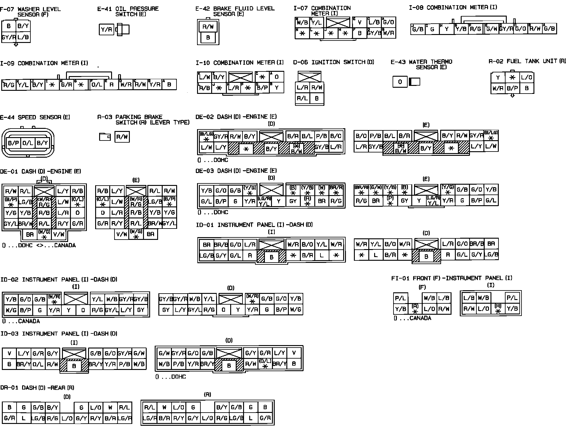 Meters & Warning Lamps. DOHC. Connector Identification: