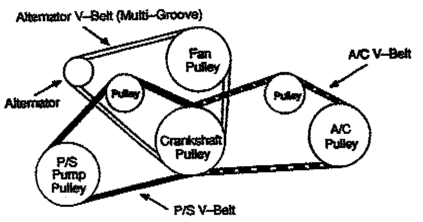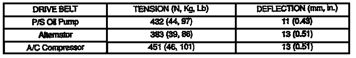 Use a belt tension gauge, SST 49 9200 020 and adjust the power steering, alternator and A/C belts to the specifications shown.