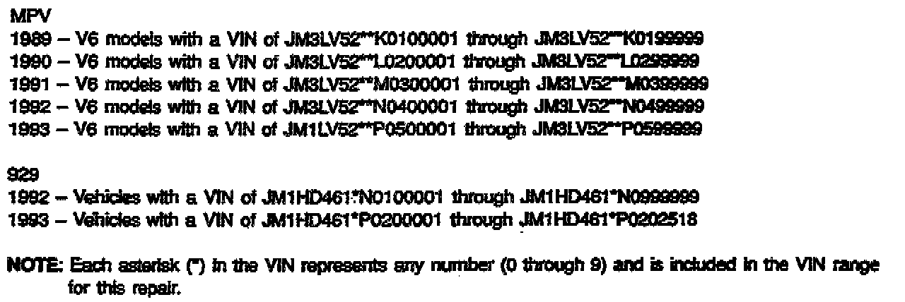 We have experienced no failures related to this notice condition with this type of Mazda V-6 engine in the subject vehicles during our extensive laboratory and real-world test.