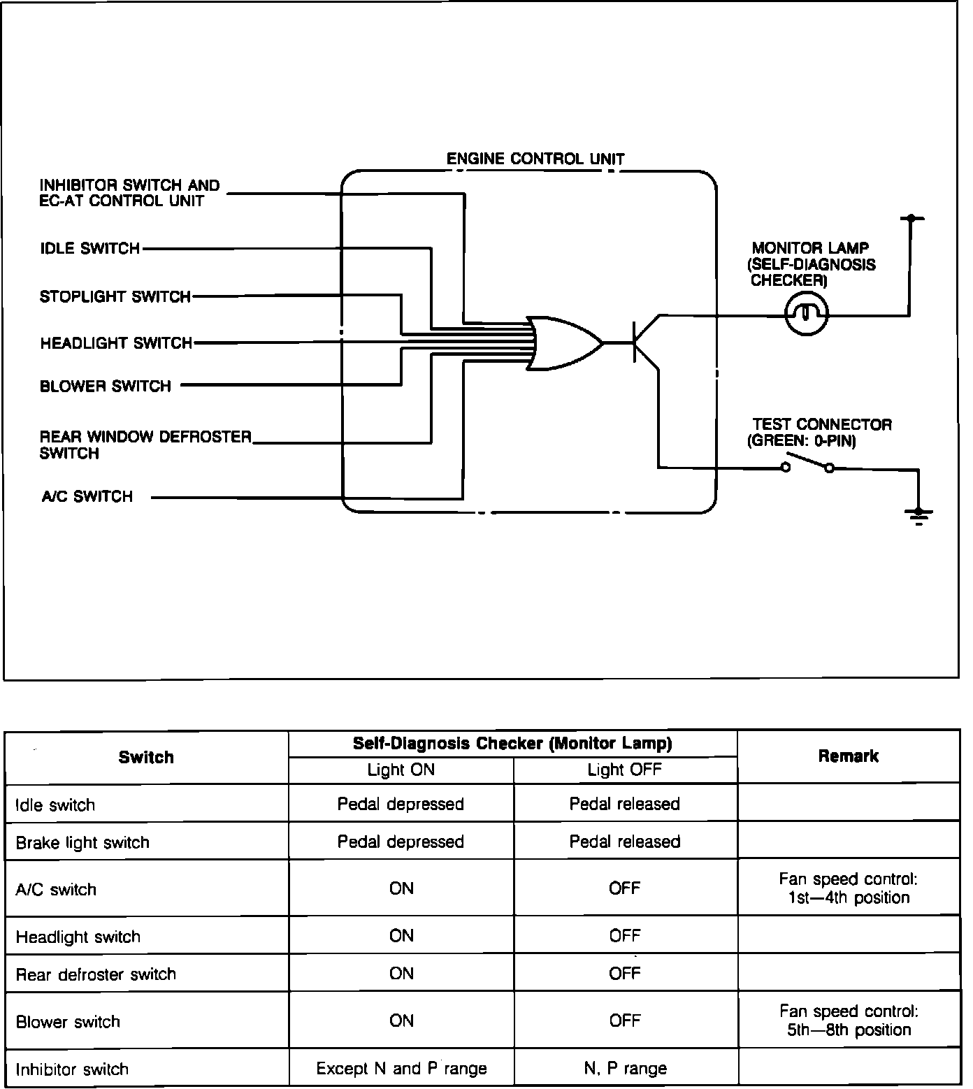 2. Connect Self Diagnosis Tester (Mazda SST #49 H018 9A1) to check connector (Green:6-pin) and negative battery terminal.