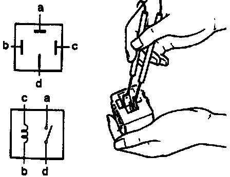 Using an ohmmeter, check continuity of the relay terminals.
