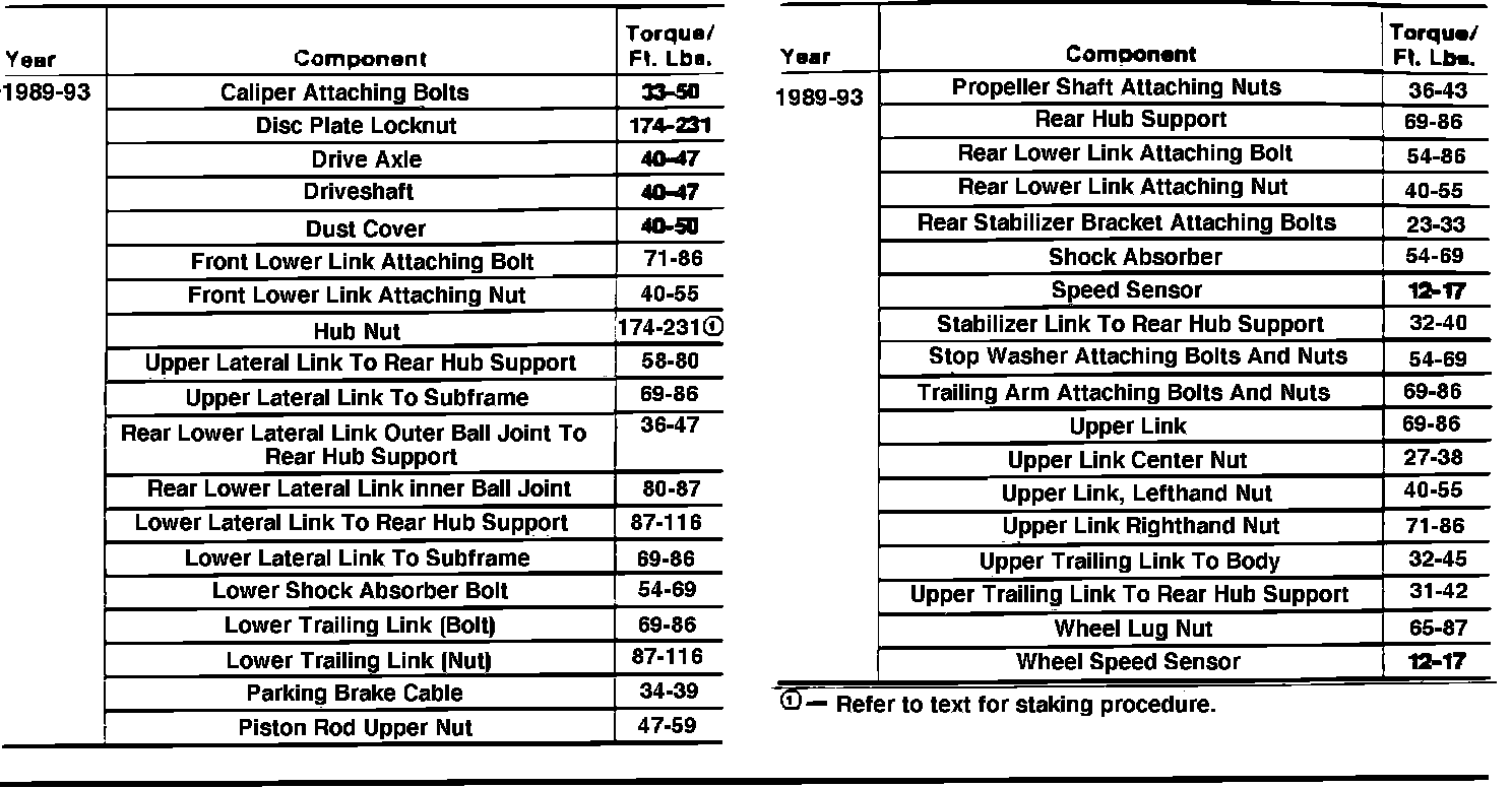 Tightening Specifications: