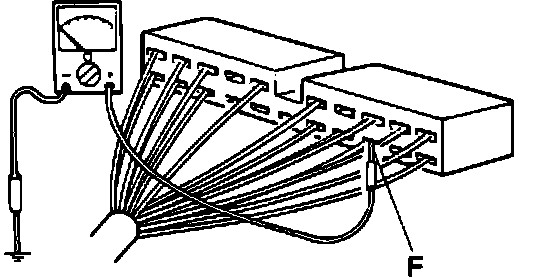 3. Connect ohmmeter between terminal F and body ground, Fig. 13.