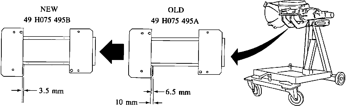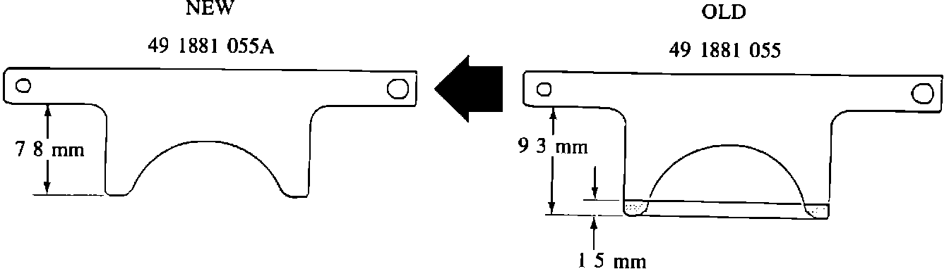The dimensions of the automatic transmission holder have been modified. The old part can be reused effectively if the overhang is reduced by 6.5 mm (see Figure 1).