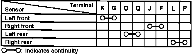 2. If continuity is not as specified, check wiring harness between wheel speed sensor and control unit.