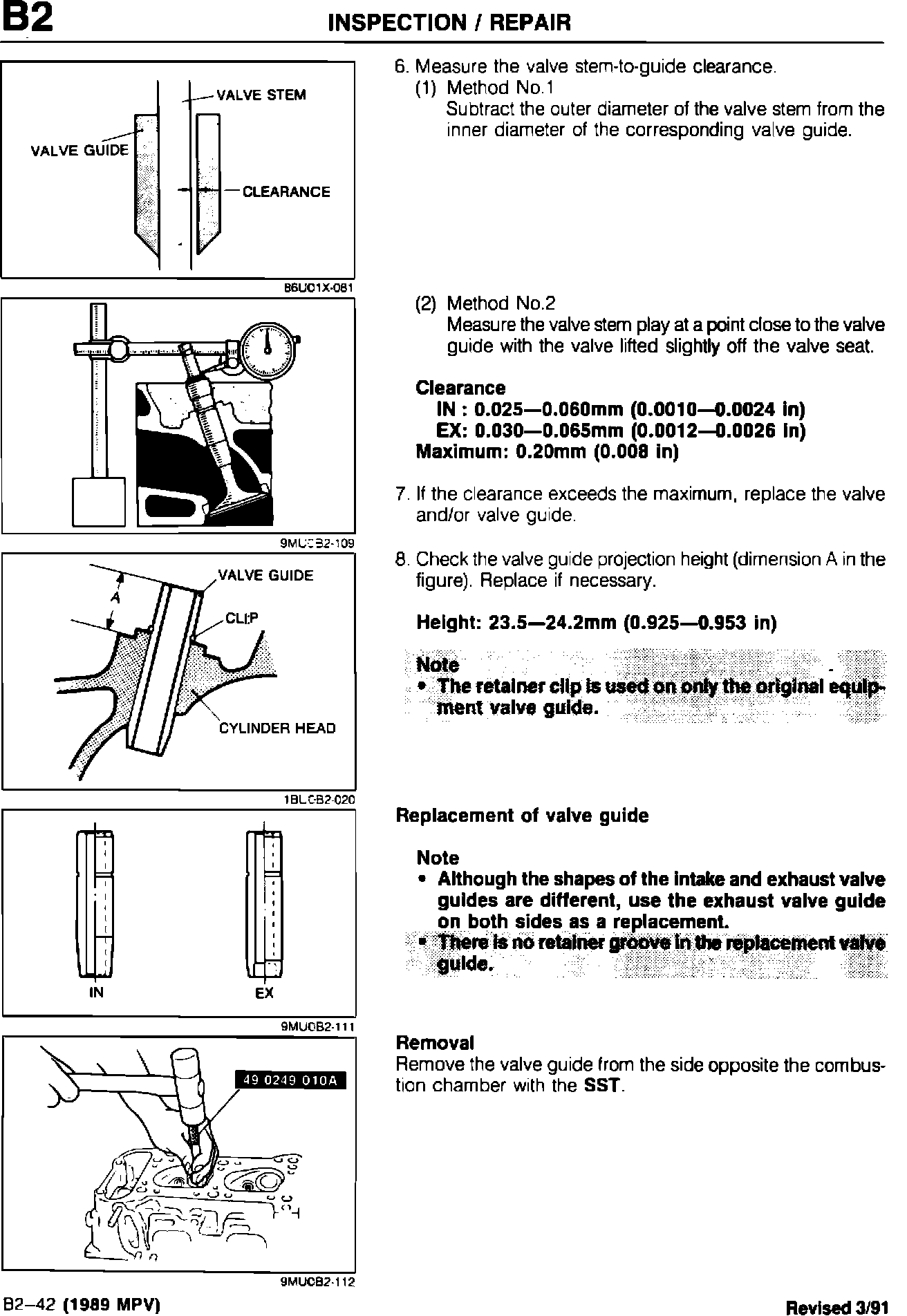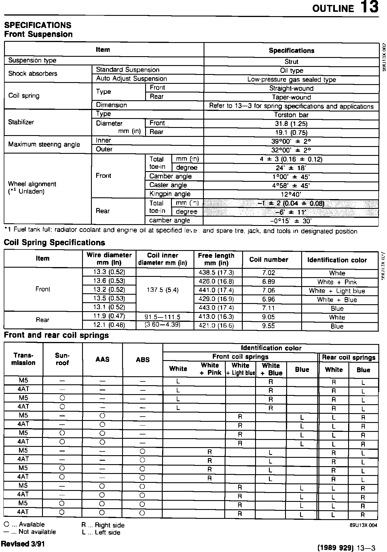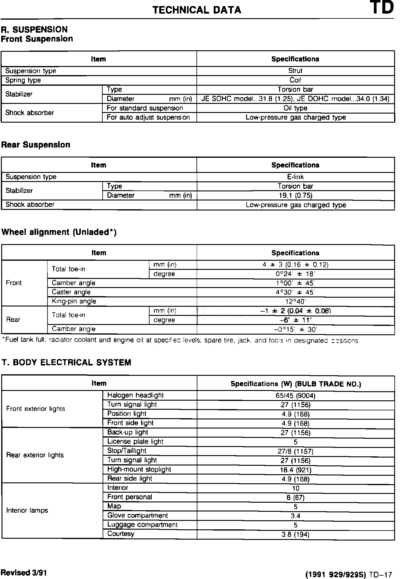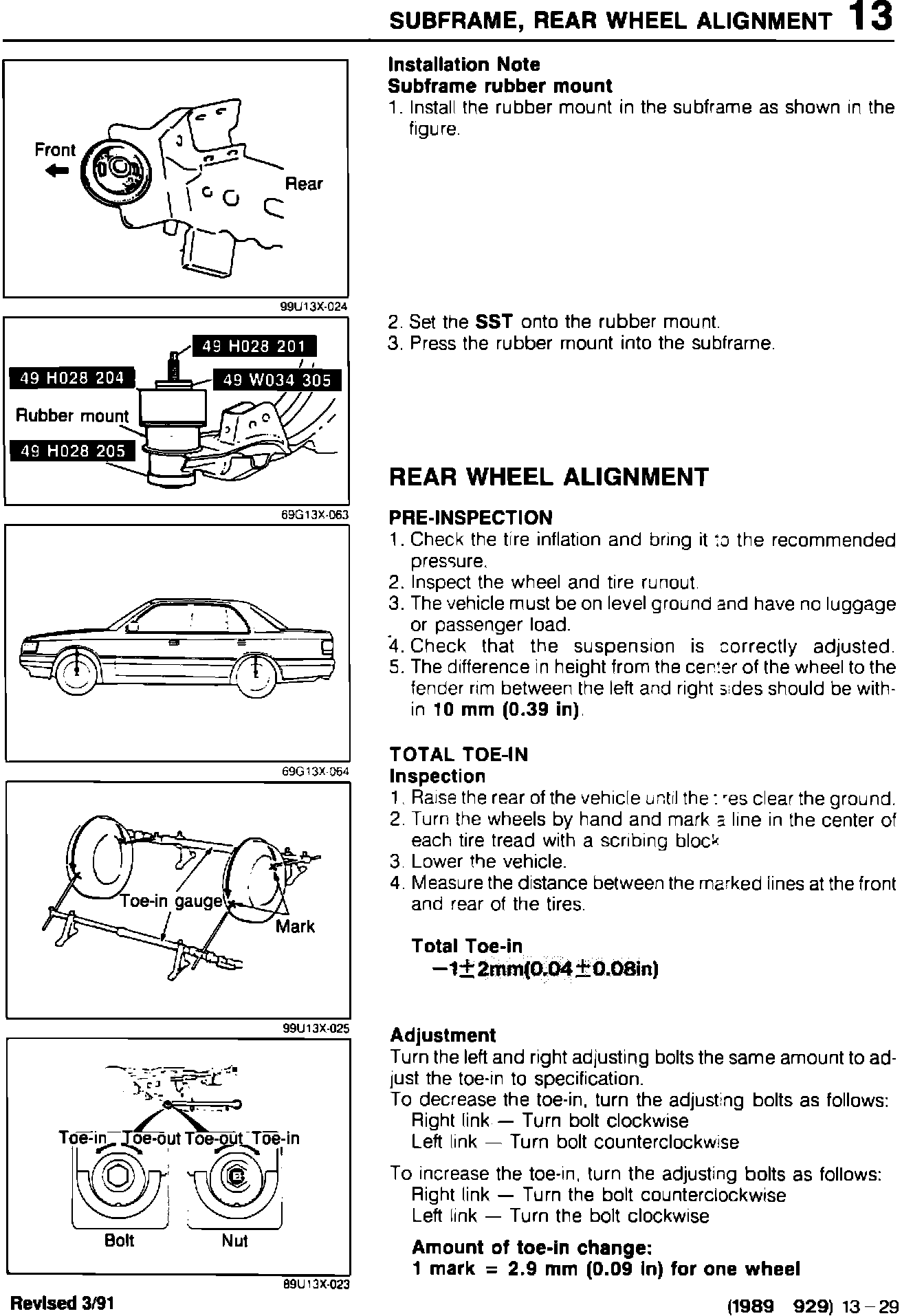 Listed are pages for the 1988 929, 1989 MPV, 929 and B-Series, 1990 MPV, 929 and B-Series, and 1991 MPV and 929 Workshop Manuals which require revisions. Please replace the current pages with the replacement pages provided.