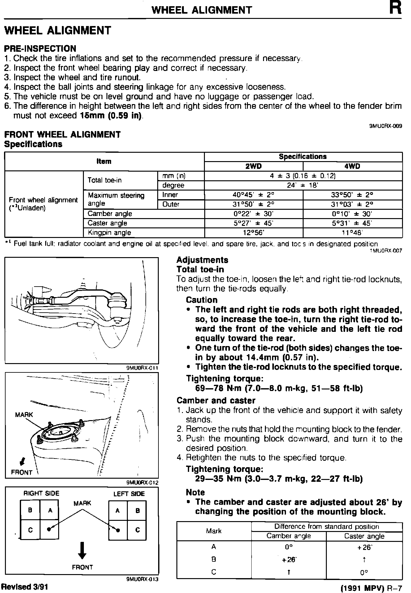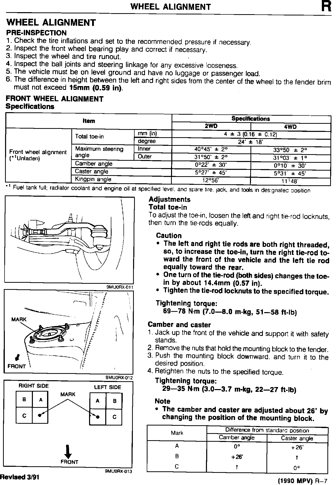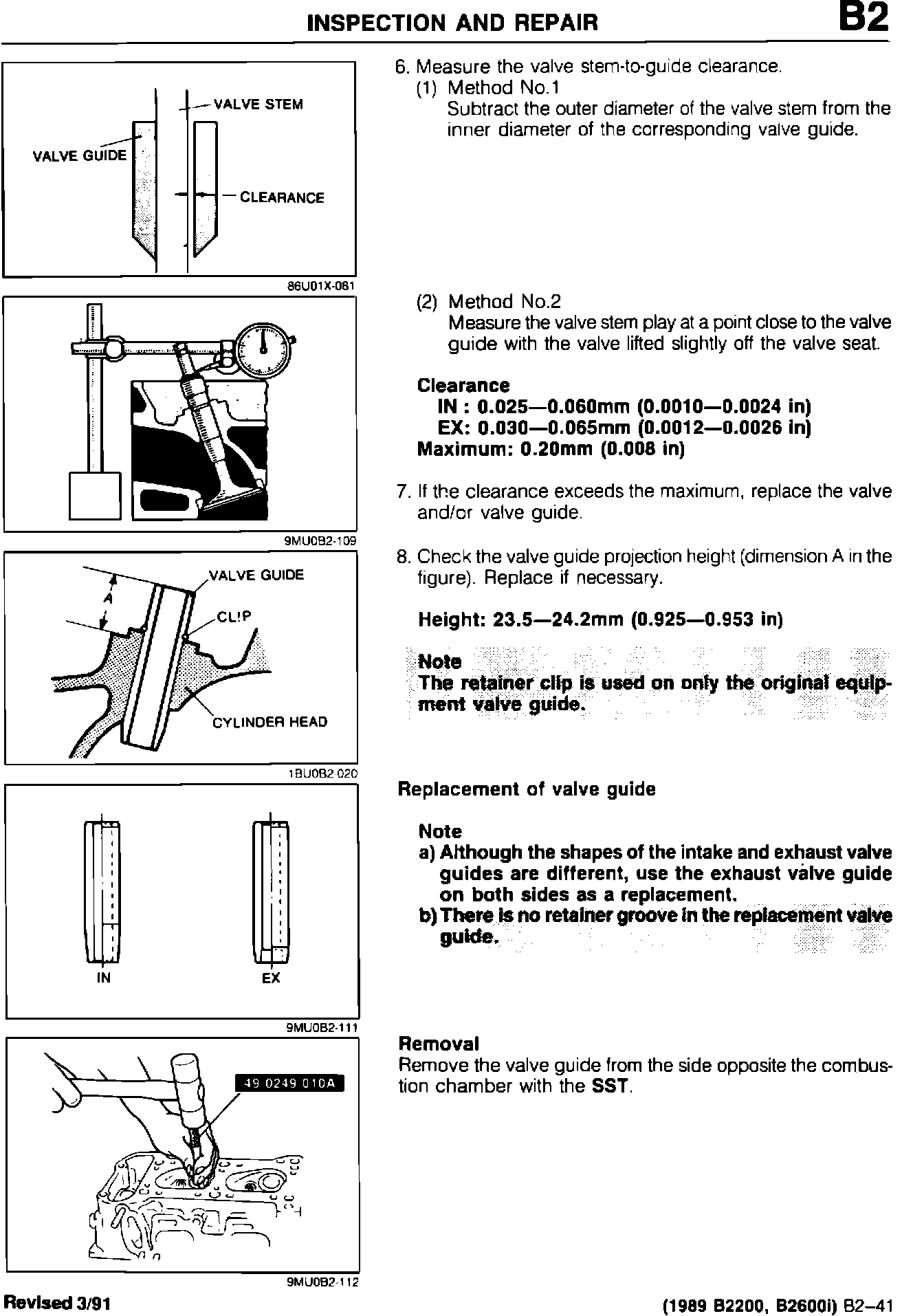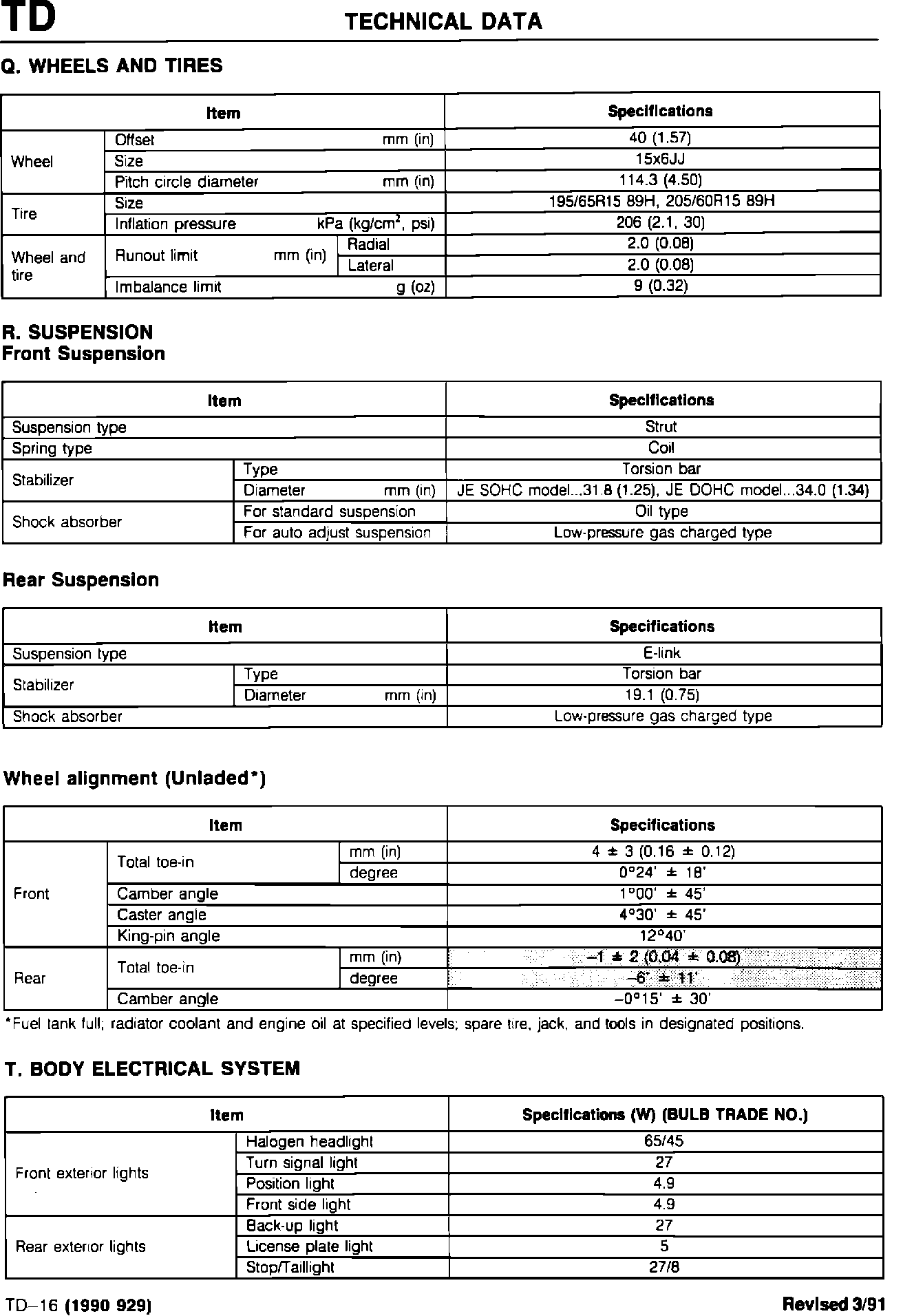 Listed are pages for the 1988 929, 1989 MPV, 929 and B-Series, 1990 MPV, 929 and B-Series, and 1991 MPV and 929 Workshop Manuals which require revisions. Please replace the current pages with the replacement pages provided.
