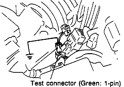 Test connector input can be checked at ECU terminal 1K, ignition switch "ON." With connector grounded, terminal voltage should be 0V. With connector not grounded, voltage should be approximately 12V. If not as specified, check wiring between test connector and ECU.